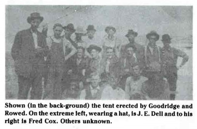 When William Goodridge and Henry Rowed arrived in June, 1906 there was only a shed which served as a shelter for people waiting to take the train. They erected a tent and proceeded to have the first store built.