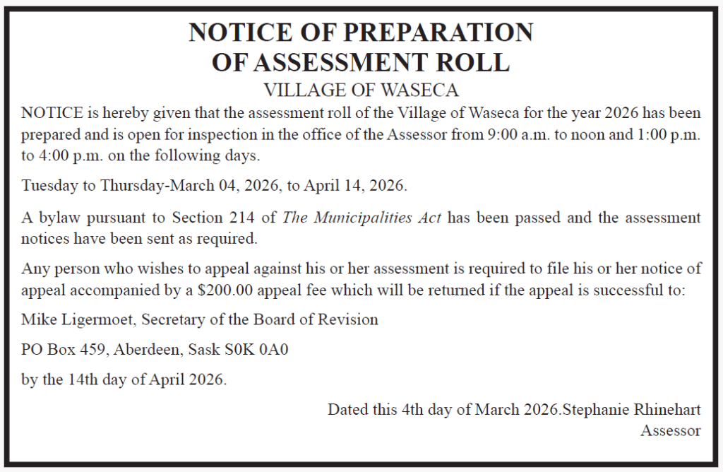 The Village of Waseca office will be closed April 7-13, 2026, due to Adminsitrator absence.